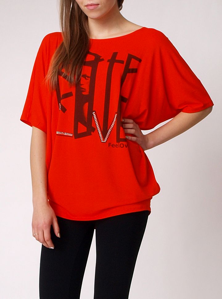 Luźna, szeroka bluzeczka z modnym nadrukiem z przodu. Napis zdobiony dżetami. Bardzo przyjemne kimono typu oversize. Tunika z krótkim rękawem. Wygodna, idealnie sprawdzi się noszona zarówno z legginsami, jak i ze spodniami.Skład: 95% wiskoza, 5% elastan