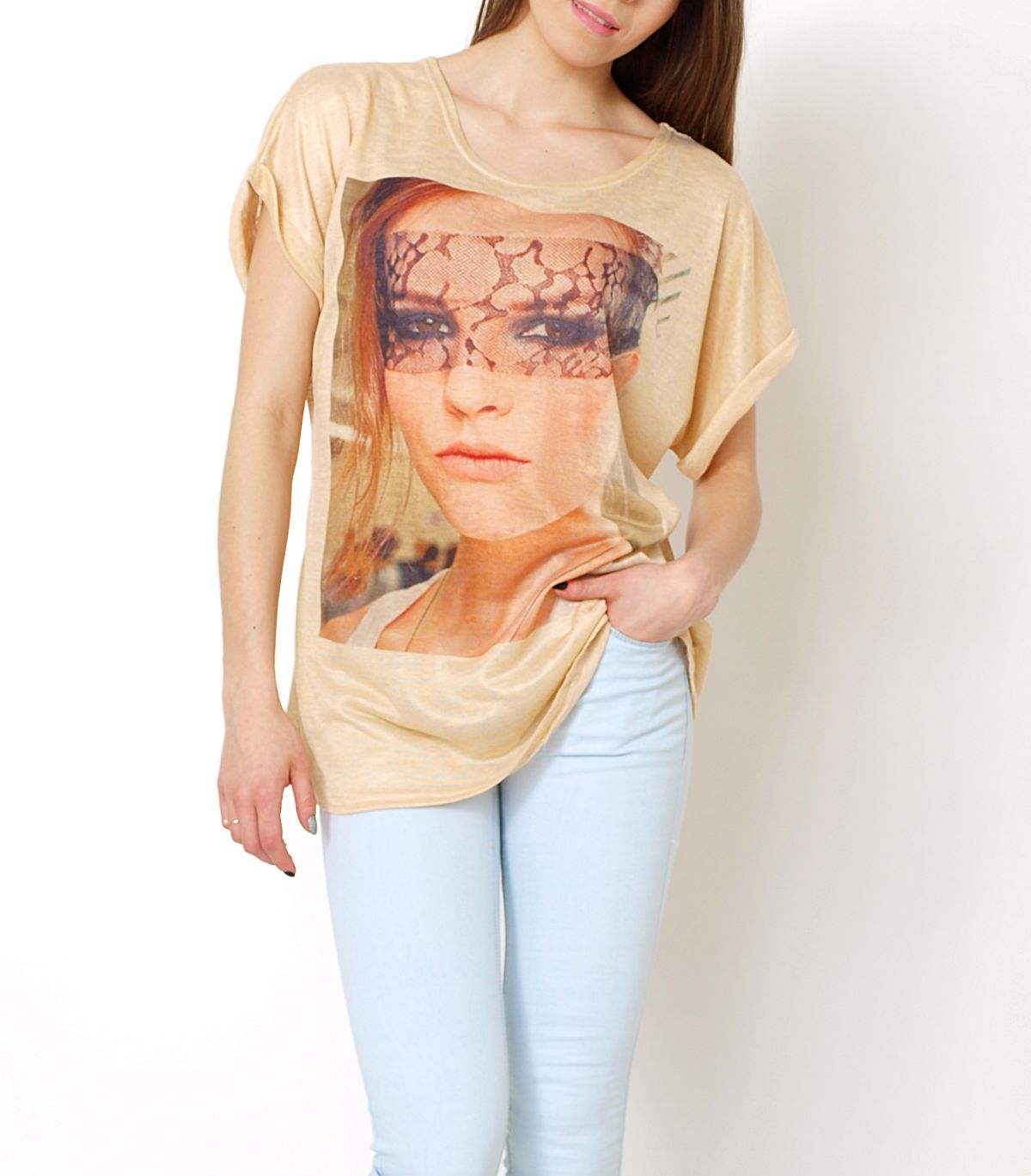 Bluzka o modnym, luźnym kroju. Tunika z nadrukiem w stylu retro z postacią kobiety. Miły w dotyku materiał. Rękawki krótkie, zakończone zakładkami. Dekolt okrągły. Bardzo wygodna i komfortowa w użytkowaniu. Idealna do legginsów, jeansów, czy szortów. Świetnie sprawdzi się w wielu codziennych stylizacjach. Dostępna w klasycznych odcieniach oraz mega modnych w tym sezonie neonowych kolorach.Skład: 65% bawełna, 35% poliester.