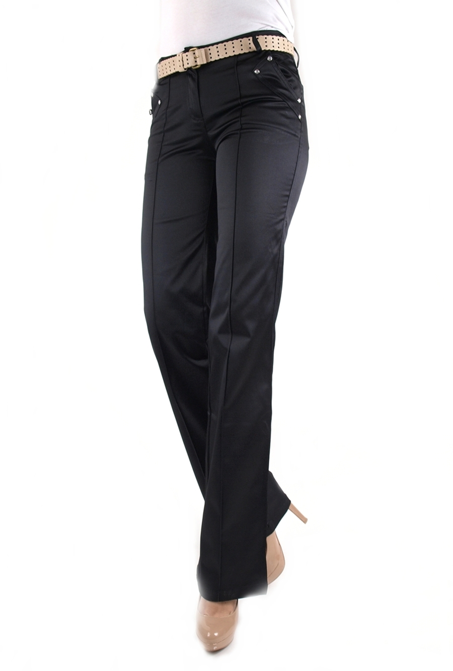 Spodnie typu bryczesy z prostymi nogawkami. Z kieszeniami z przodu i tyłu. Zapinane na zamek i guzik. Materiał z efektownym połyskiem. Skład: 45% bawełna, 52% poliester, 3% elastan
