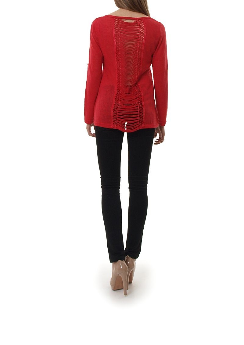 Bluzka z długim rękawem. Koszulka na ramionach zdobiona złotymi ćwiekami. Ozdobione, efektowne plecy. Miękka, wykonana z przyjemnego w dotyku materiału. Rękawki z możliwością podwinięcia. Dekolt okrągły. Dostępna w modnych kolorach.