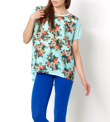 Śliczna asymetryczna bluzka w najmodniejszym motywem tego sezonu. Luźna tunika z szyfonowym przodem, w piękne kolorowe kwiaty. Tył dłuższy, gładki, wykonany z przyjemnego materiału. Dekolt okrągły, wykończony lamówką. Świetna propozycja dla pań ceniących wygodę oraz modny, efektowny look. Bluzka ładnie układa się na sylwetce. Idealnie sprawdzi się w zestawieniu z kolorowymi legginsami, które dostępne są na innych naszych aukcjach. Skład: 100% poliester.Wzrost modelki: 172cmNa co dzień nosi rozmiar: S/M