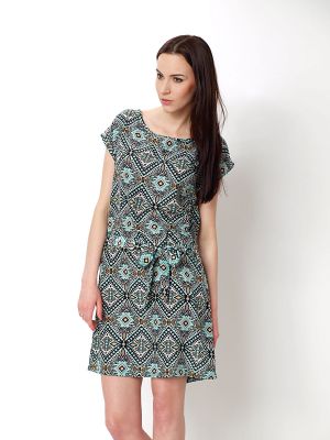 Niepowtarzalna sukienka z krótkim rękawem w stylu etno. Azteckie wzory,są prawdziwym hitem już od kilku sezonów! Sukienka mini o luźnym kroju. W talii wiązana tasiemką, dzięki czemu ładnie podkreśli kształt figury. Na plecach zapinana na złoty suwak. Dekolt okrągły. Bardzo wygodna. Wykonana z przyjemnego, dobrego gatunkowo materiału. Świetna propozycja na upalne letnie dni. Wzory przyciągają uwagę, a pastelowe kolory uczynią każdą stylizację wyjątkowo oryginalną i mega modną.Skład: 100% poliesterWzrost modelki: 174cmModelka ma na sobie: rozmiar z metki MNa co dzień nosi rozmiar: S