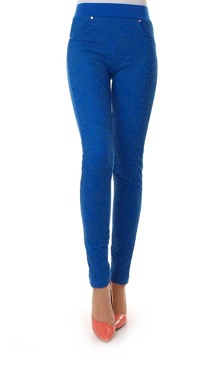 Modne wyszczuplające spodnie z wysokim stanem. Dopasowane rurki z koronką z przodu oraz gładkim tyłem. Bawełniane bardzo wygodne getry z imitacją kieszeniami z przodu oraz złotymi nitami. W pasie na elastycznej szerokiej gumce. Miękkie i przyjemne w dotyku.Skład: 65% bawełna, 35% poliester,