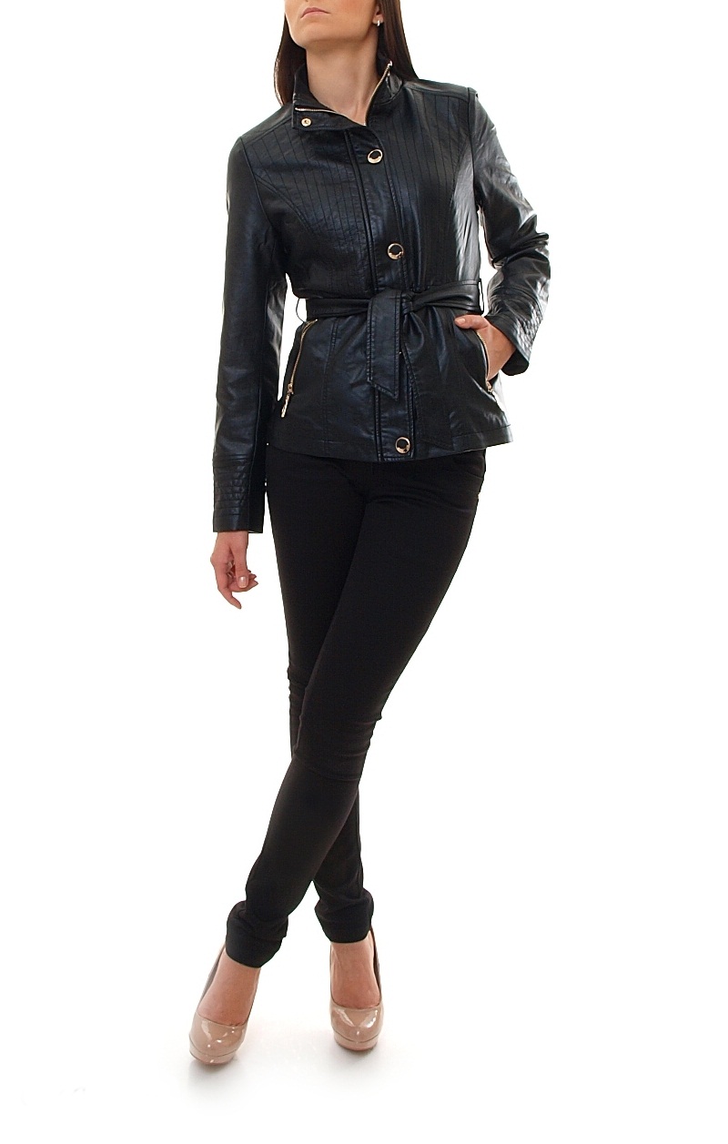 Modny płaszczyk z ekoskóry zapinany na zamek i guziki. Kurteczka z kieszeniami ( zapinane na zamek) z przodu, w pasie z paskiem. Posiada podszewkę. Wygodna i stylowa.Skład:materiał wierzchni: 100% skóra ekologicznapodszewka: 100% wiskoza