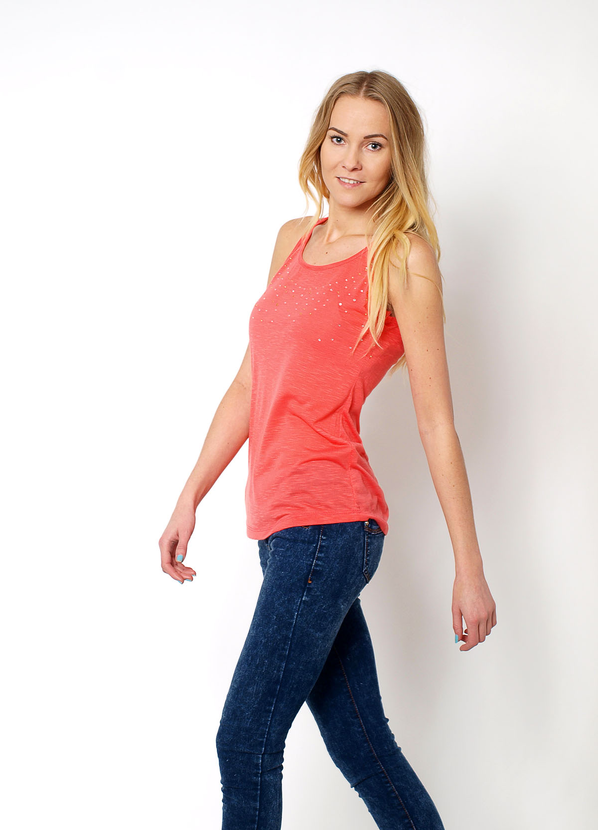 Rewelacyjna letnia bluzka o klasycznym kroju bokserki. Wykonana z mięciutkiego w dotyku, cieniowanego materiału. Dekolt zdobiony połyskującymi cyrkoniami. na plecach zapinana na złoty suwak. Lekka i bardzo wygodna. Świetnie sprawdzi się podczas letnich, upalnych dni. Idealnie sprawdzi się w wielu modnych zestawieniach, np. z legginsami, szortami, czy spódnicami. Do wyboru piękne odcienie oraz hit tego sezonu - neony!Skład: 80% bawełna, 15% poliester, 5% elastan.Wzrost modelki: 174cm Modelka ma na sobie: rozmiar z metki S/MNa co dzień nosi rozmiar: S