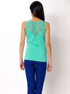 Przyjemna, bawełniana bluzka bez rękawów. Komfortowa bokserka zdobiona na plecach uroczymi kokardkami oraz wstawką z delikatnej koronki. Przód gładki. Klasyczny, mega wygodny krój. Bardzo praktyczna propozycja, który urozmaici wiele letnich stylizacji. Pasuje niemal do wszystkiego. Skład: 95% bawełna, 5% elastan.Wzrost modelki: 174cm Na co dzień nosi rozmiar: S