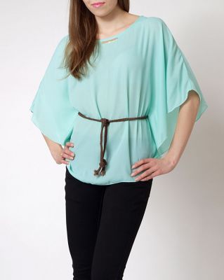 Śliczna, zwiewna bluzka typu motyl. Wiązana w talii sznureczkiem. Efektowna mgiełka z okrągłym dekoltem. Delikatna i miła w dotyku. Bardzo stylowy, kobiecy fason. Dostępna w najmodniejszych kolorach tej wiosny.
