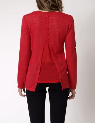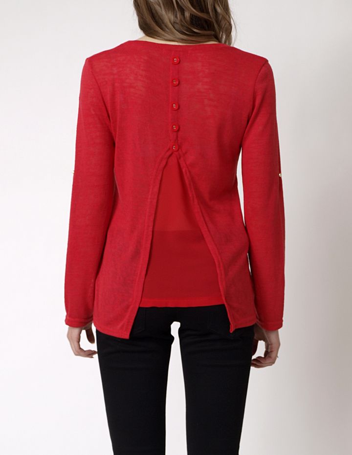 Wyjątkowa bluzka z długim rękawem. Możliwość podwinięcia rękawków. Miękka, bawełniana koszulka z pięknymi, ozdobnymi plecami. Szyfonowa wstawka, oraz guziki, nadają całości niepowtarzalnego uroku. Z przodu, na wysokości piersi kieszonka. Dekolt okrągły. Bluzka wykonana z półkryjącego materiału, bardzo wygodna i komfortowa. Idealna propozycja do wielu wiosennych stylizacji. Skład: 65% bawełna, 35% poliester.