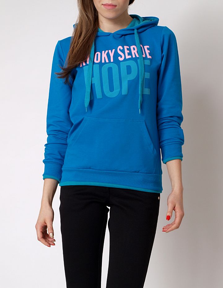 Rewelacyjna, mega modna sportowa bluza. Bawełniana bluza z kapturem. Z przodu kolorowy nadruk. Wkłada na przez głowę. Z przodu praktyczne kieszenie typu kangurek. Dół, oraz rękawy zakończone elastycznymi ściągaczami w kontrastowych kolorach. Bardzo wygodna i przyjemna w użytkowaniu. Starannie wykończona, wykonana z dobrych gatunkowo materiałów. Skład: 65% bawełna, 35% poliester