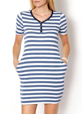 Sukienka z kieszeniami, krótki rękaw. Fason z uwydatnioną linią bioder. Miękki model z dekoltem w szpic. Materiał: 92% TC (bawełna+poliester), 8% spandex.Modelka: wzrost 175 cm, na co dzień nosi S/M, rozmiar z prezentacji produktu M.