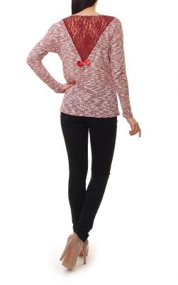 Pomysłowa bluzka z ciekawymi plecami - koronkowa wstawka i kokardka. Koszula zdobiona z przodu błyszczącymi, złotymi kamyczkami oraz koronką. Wygodny sweterek z długim rękawem.Skład: 65% bawełna, 35% poliester
