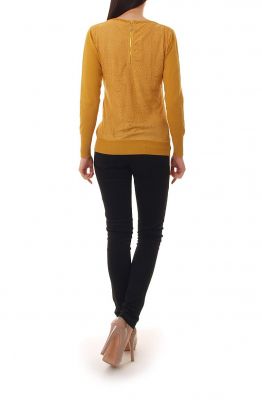 Piękny, ciepły sweterek z efektownymi, koronkowymi plecami. Sweter z długimi rękawami. Z przodu dwie kieszonki. Dół oraz rękawy zakończone elastycznymi ściągaczami. Na plecach modny, rozpinany złoty zamek.Tył sweterka dwuwarstwowy. Wewnętrzna warstwa wykonana z kryjącej siateczki, wierzchnia z pięknej, delikatnej koronki.Skład: 40% wełna, 35% wiskoza, 25% elastan.