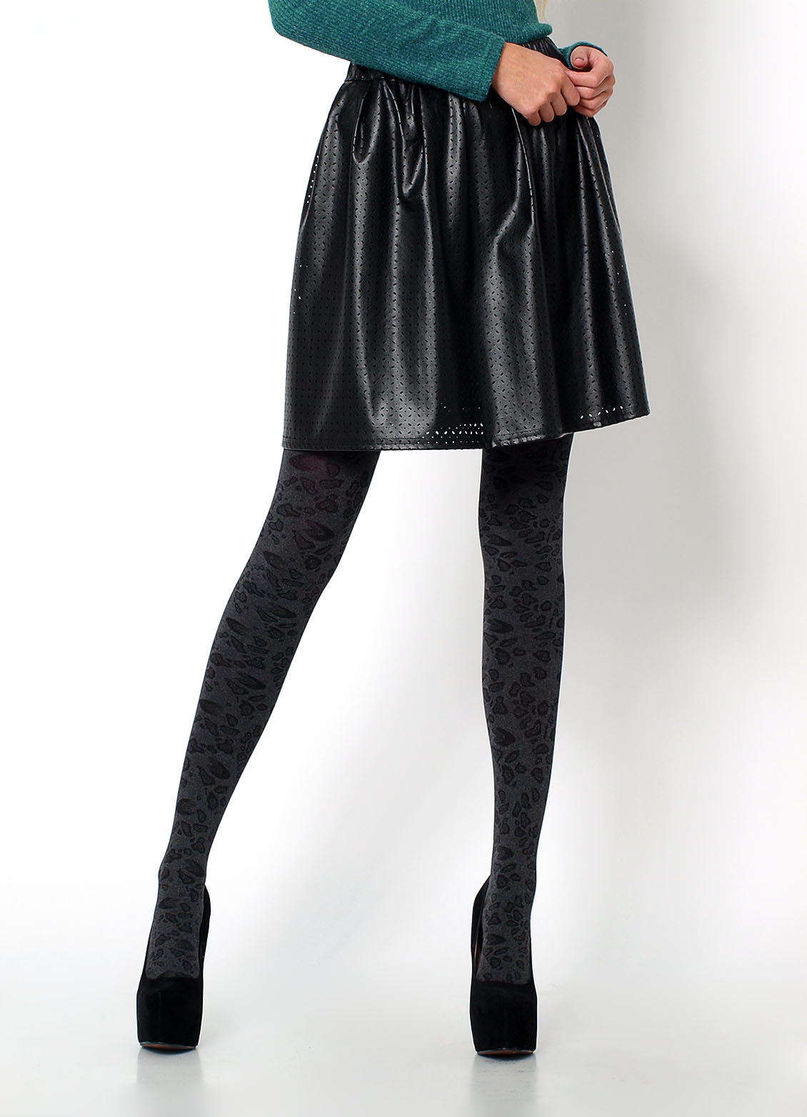 Ciepłe, bardzo oryginalne rajstopy w panterkę. Grube, wzorzyste rajstopy z klinem, bez zaznaczonej części majteczkowej, z delikatnym wzmocnieniem na palcach. Zawsze modne, wygodne oraz praktyczne. Świetnie prezentują się w połączeniu z sukienkami i spódniczkami. Idealne na chłodniejsze dni.Materiał 80% poliamid, 14% poliester, 6% elastan