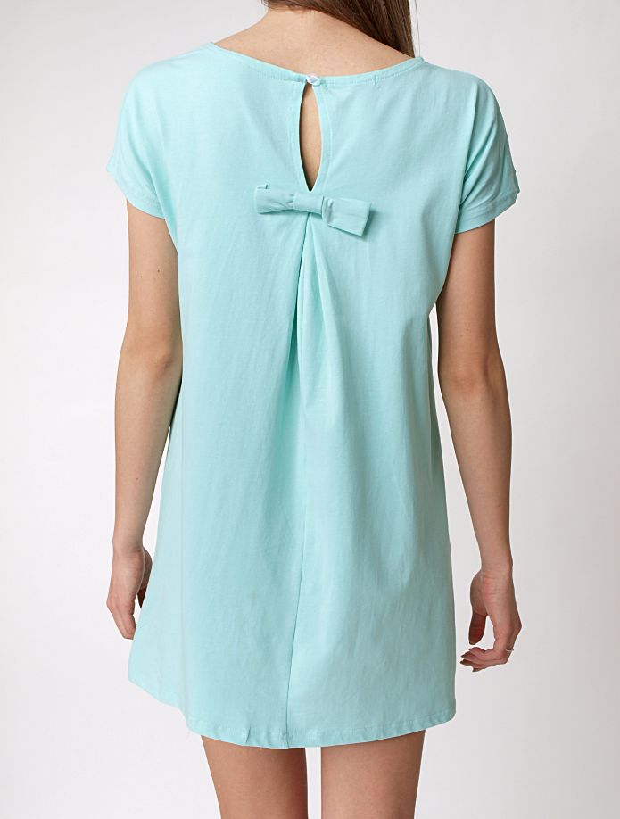 Bawełniana, niezwykle kobieca tunika. Długa bluzka o modnym, rozkloszowanym kroju. Krótki rękawek. Na plecach zmysłowe rozcięcie, oraz kokardka, która dodaje całości niepowtarzalnego uroku. Zwiewna, bardzo komfortowa. Świetnie prezentuje się na sylwetce.Skład: 95% bawełna, 5% elastan.