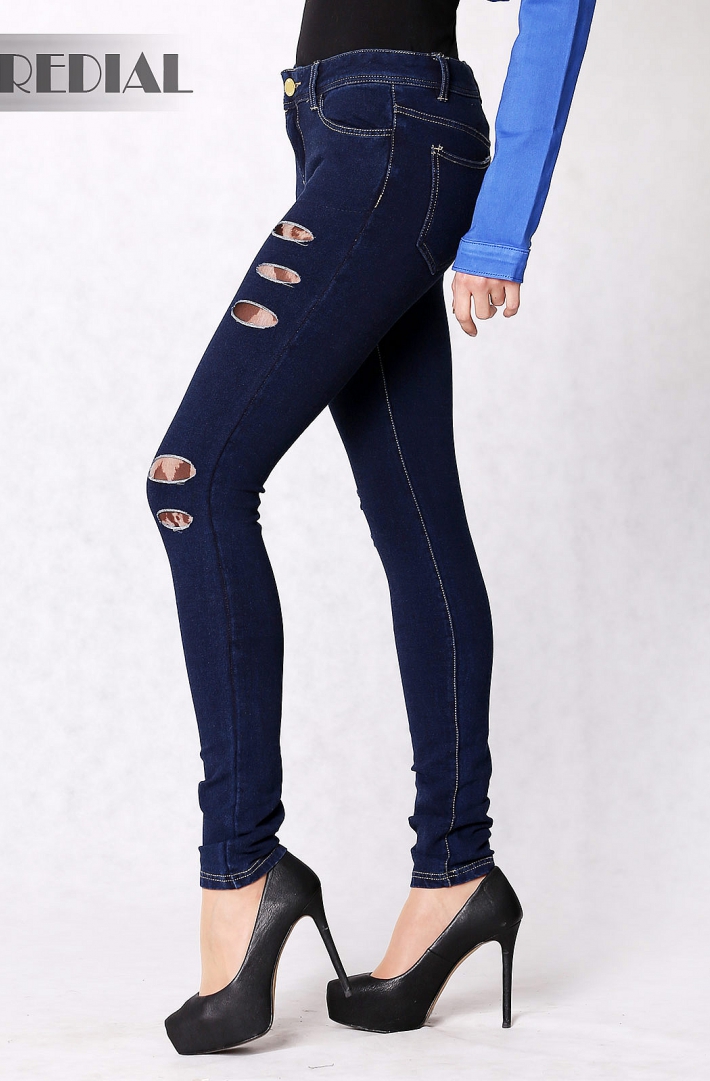 Jeansowe rurki, styl destroyed z panterkową koronką REDIAL