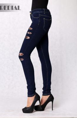2414-1 Jeansowe rurki, styl destroyed z panterkową koronką REDIAL