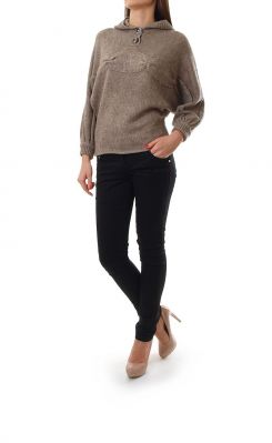 Bardzo ciekawy sweter z kapturem. Gruby, ciepły sweterek typu kimono. Nietoperz z dekoltem zapinanym na dwa guziki. Z przodu oraz z tyłu ozdobny warkocz o pięknym splocie. Modny, praktyczny, idealny na chłodniejsze dni.Skład: 30% wełna, 70% akryl (wełna syntetyczna).