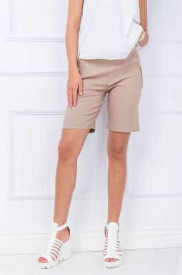 Krótkie spodenki z wyższym stanem. Sięgają powyżej kolan. Dopasowują się do ciała dzięki elastycznemu materiałowi. W pasie gumka. Z przodu kieszenie zapinane na zamek. Materiał 95% bawełna, 5% elastanModelka wzrost 175cm, na co dzień nosi S/M, rozmiar z prezentacji produktu M/L