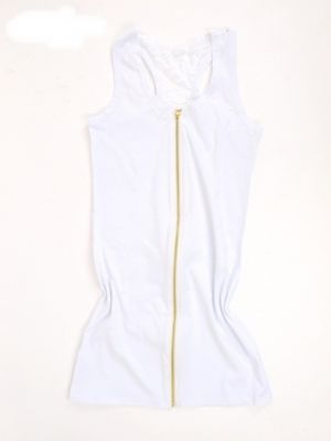 Elastyczna sukienka zapinana z przodu miedzianym zamkiem. Seksowna, dopasowana i komfortowa jednocześnie. Z tyłu delikatne zdobienie koronkowe. Idealna jako tunika. SKŁAD: 95% bawełna , 5% spandex