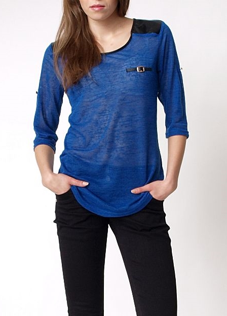 Bawełniana bluzka z rękawkami o długości 3/4. Na ramionach modne w tym sezonie wstawki a`la skóra. Z tyłu, na plecach ozdobny, rozpinany zamek. Lekka koszulka z efektownymi dodatkami, idealne uzupełnienie codziennego stylu.Skład: 65% bawełna, 35% poliester.