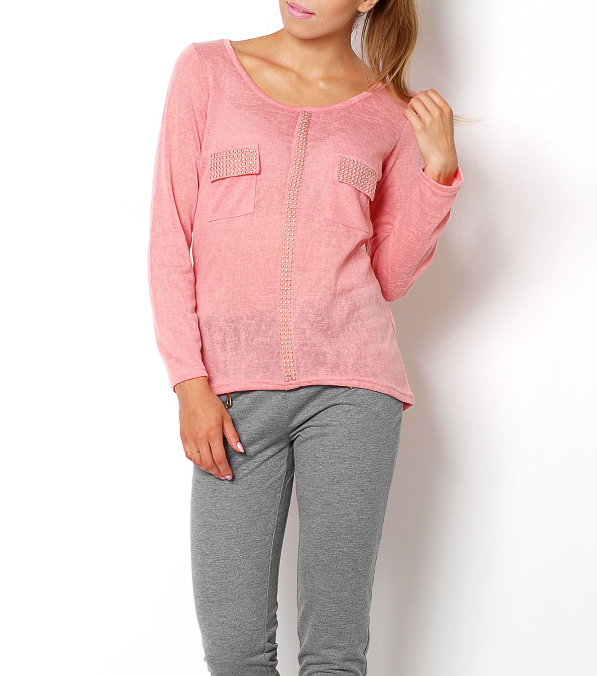 Bluzka z długim rękawem zdobiona złotymi cekinami. Szeroka, luźna oraz bardzo komfortowa tunika wykonana z fajnego materiału. Kieszonki z patkami. Asymetryczna bluzeczka z lekko długim tyłem.Skład: 65% bawełna, 35% elastan