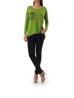 Szeroki, ciepły sweter. Z przodu na wysokości piersi kieszonka. Delikatnie dłuższy tył w poziome paski. Luźny kardigan, ładnie układa się na sylwetce. Skład: 40% wełna, 35% wiskoza, 25% elastan