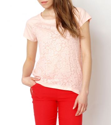 Śliczna koronkowa bluzka. Tunika z modnym w tym sezonie dłuższym tyłem. Krótkie rękawki wykonane z miłego w dotyku bawełnianego materiału. Przód i tył ( przód podszyty podszewką) z delikatnej koronki w piękny kwiatowy deseń. Na plecach złoty, rozpinany zamek. Bluzka na sylwetce prezentuje się naprawdę zjawiskowo. Pasuje do wielu eleganckich stylizacji, jak również tych mniej formalnych, codziennych, np. do legginsów.Skład: 95% bawełna, 5% spandex.