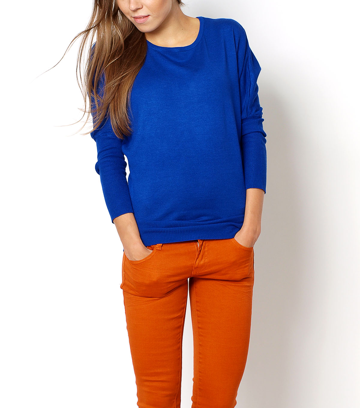 Sweter, na plecach koronka i kokardki, z przodu bez zdobień, dekolt okrągły, na dole rękawów długie ściągacze.Modelka wzrost 172cm, na co dzień nosi S/M, rozmiar z prezentacji produktu S/XL(UNIWER)