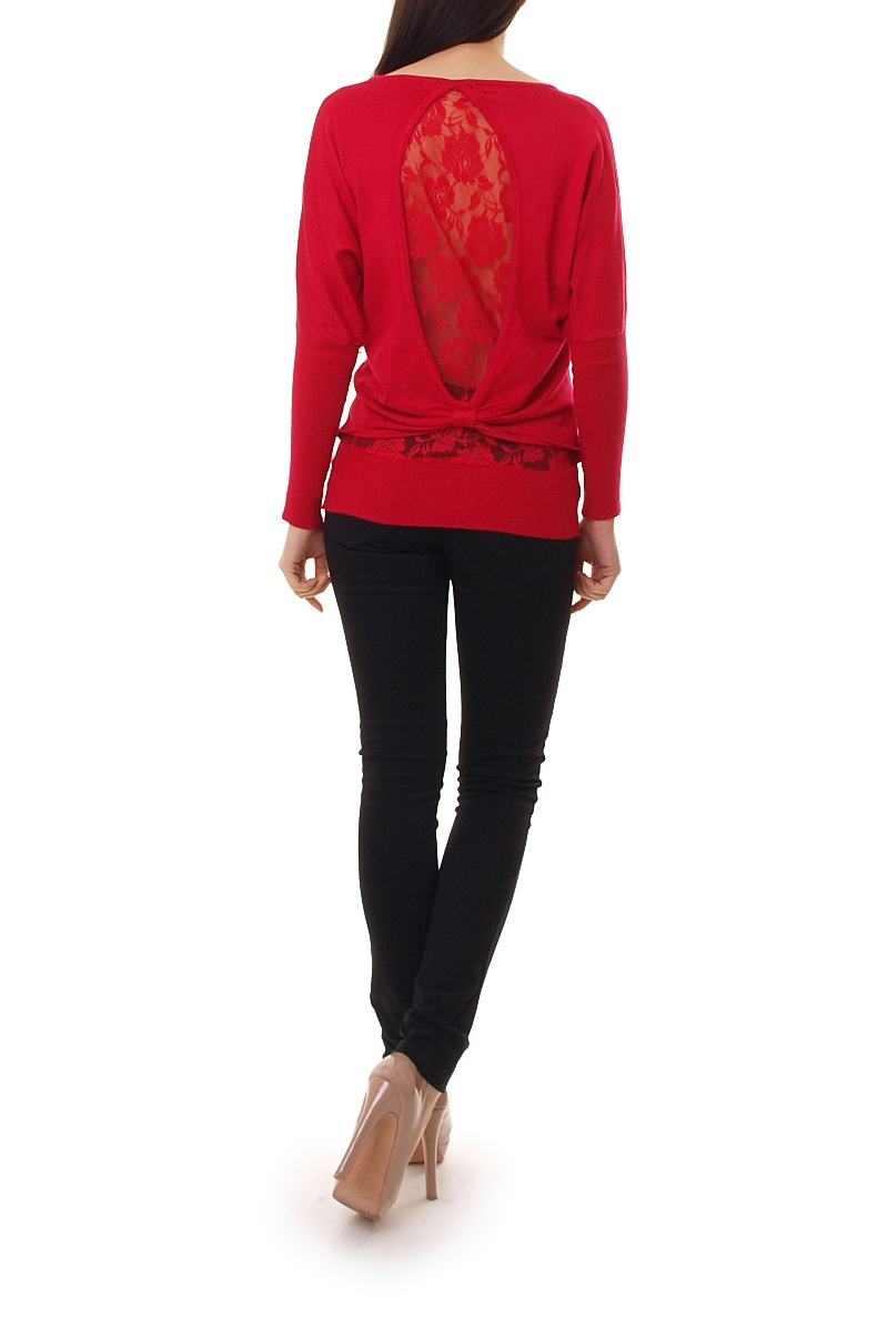 Klasyczny sweter/kimono. Sweterek posiada dwuwarstwowe plecy. Wewnętrzna warstwa z pięknej, delikatnej koronki, zewnętrzna z ozdobnym wycięciem i kokardą. Przód gładki. Dół i rękawy zakończone szerokim ściągaczem. Luźny, bawełniany, bardzo wygodny nietoperz. Dzięki ciekawemu połączeniu materiałów sweterek prezentuje się naprawdę modnie i stylowo.Skład: 65% bawełna, 35% poliester