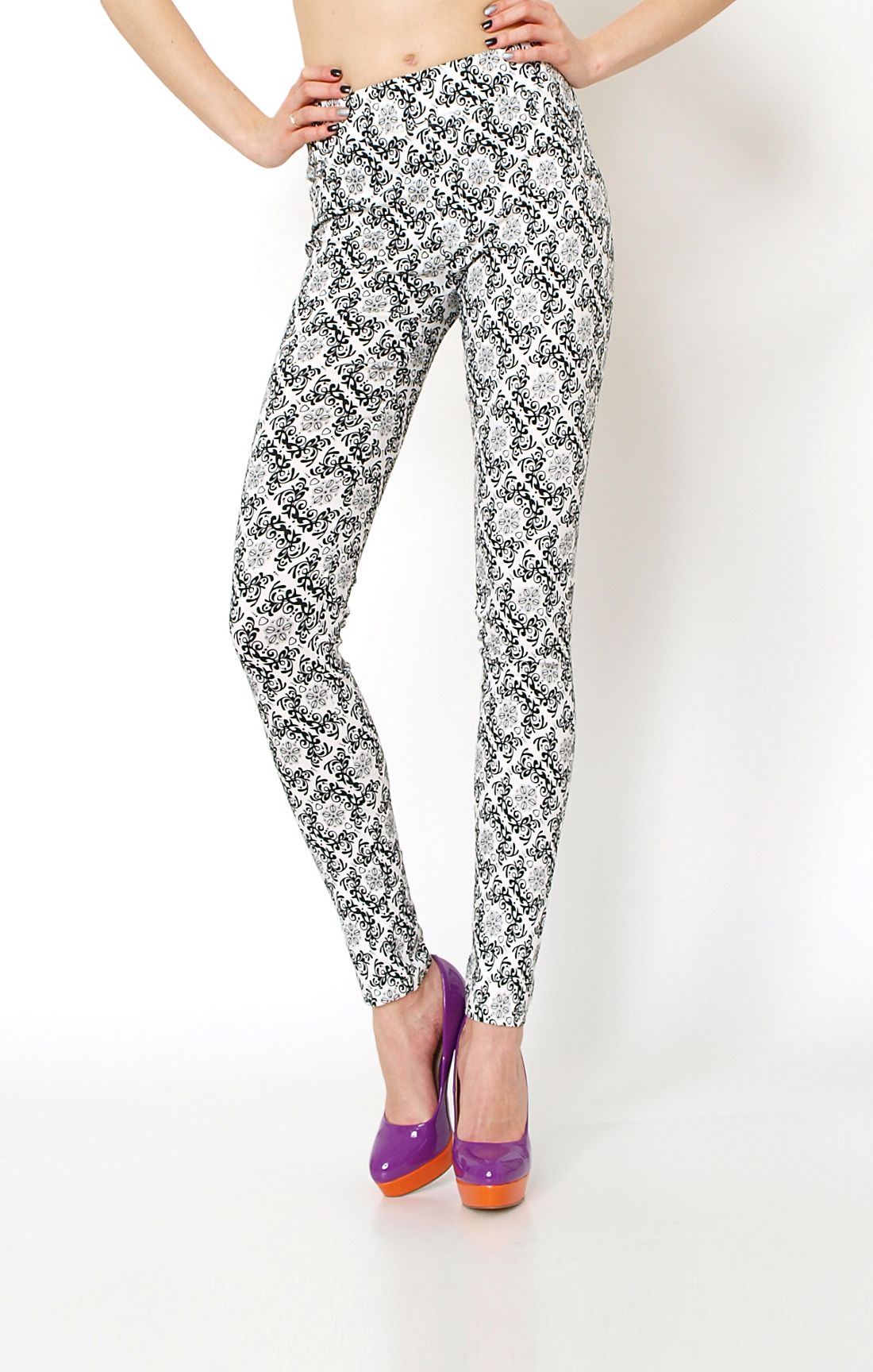 Wysmuklające spodnie z wyższym stanem. Elastyczne, wzorzyste rurki w stylu retro. W pasie na gumce. Z tyłu kieszenie, z przodu imitacja kieszeni i rozporka. Wykonane z dobrej jakości bawełnianego materiału. Dobrze dopasowują się do figury. Są wygodne zupełnie jak legginsy. Dzięki niepowtarzalnemu wzornictwu i wiosennym kolorom, spodnie prezentują się na sylwetce wręcz zjawiskowo!Skład: 70% bawełna, 20% poliester, 10% elastan.