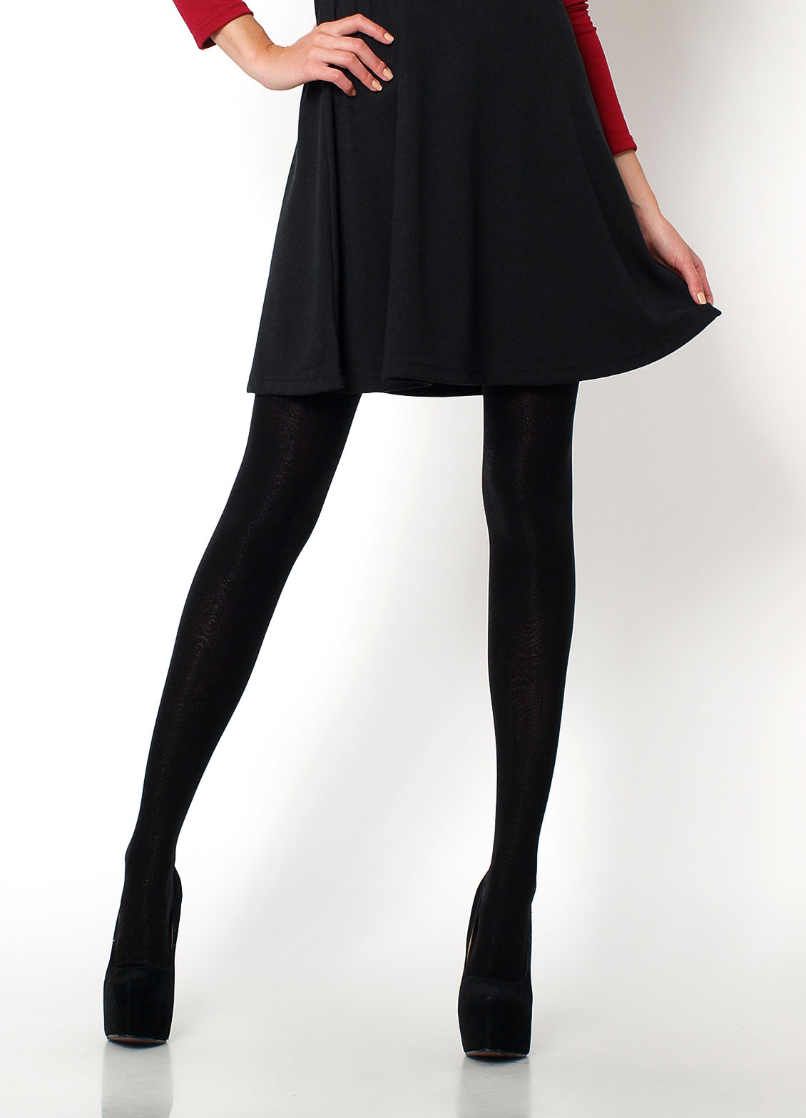 Grube, wyszczuplające rajstopy w pionowe, połyskujące wzory. Bezmajteczkowe rajstopy z klinem. Kryjące, idealne na chłodne dni. Materiał grubość: 280 DEN, 50% poliamid, 45% poliester, 5% elastan.