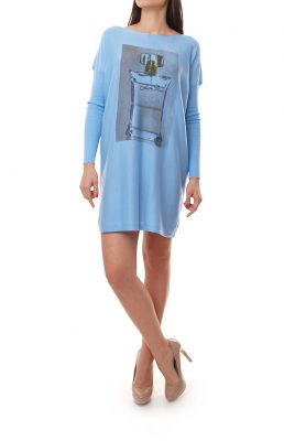 Miękka i przyjemna w dotyku dzianinowa tunika z nadrukiem perfum. Szeroki i luźny swetertypu kimono / nietoperz. Rękawy wykonane z elastycznego ściągacza. Ciepła, komfortowa,długa bluzka. Starannie wykończona.Skład: 55% poliester, 20% akryl, 20% nylon, 5% wełna