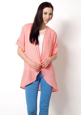 Lekki, zwiewny szyfonowy kardigan. Narzutka - mgiełka to idealna propozycja na uzupełnienie wielu stylizacji. Koszula posiada rękawy o długości 3/4 z możliwością ich podwinięcia. Prosty, a zarazem elegancki krój bardzo efektownie prezentuje się na sylwetce. Z powodzeniem zastąpi marynarkę, czy żakiet. Dostępna w najmodniejszych kolorach tego lata.Skład: 100% poliester.Wzrost modelki: 175cmModelka ma na sobie: rozmiar z metki M/LNa co dzień nosi rozmiar: S