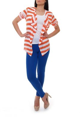 Kardigan w paski z rękawami 3/4 z możliwością podwinięcia rękawa. Niezwykle praktyczny, a zarazem elegancki sweterek. Podkreśla kobiecą sylwetkę, dostępny w modnych kolorach.Skład: 100% wiskoza