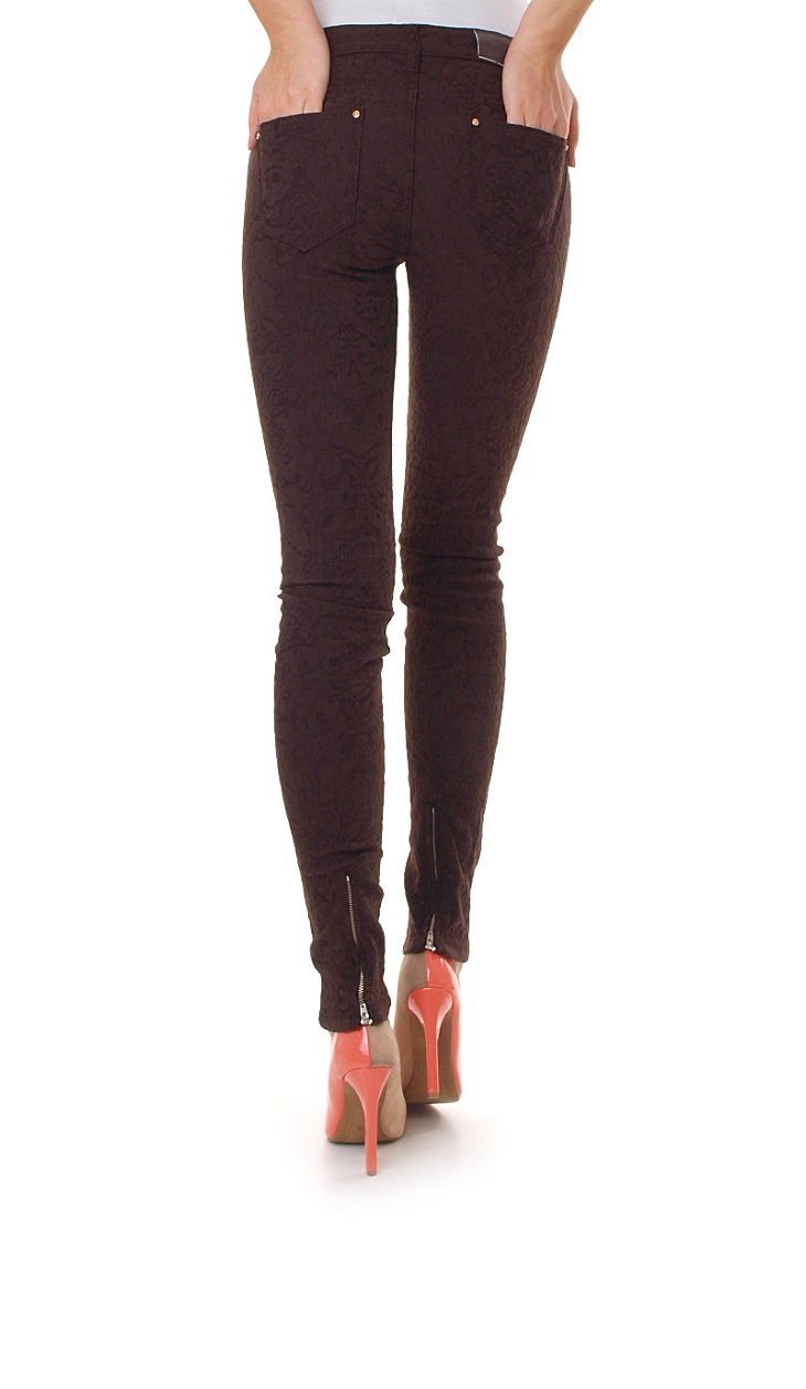 Modne ażurowe, koronkowe spodnie typu rurki. Dopasowane bawełniane spodnie. Kieszenie zdobione złotymi nitami. Zapinane na guzik i zamek. Nogawki na dole zakończone rozpinanymi zameczkami. Miękkie i przyjemne w dotyku bryczesy. Dzięki ciekawej fakturze spodnie prezentują się niezwykle seksownie.Skład: 70% bawełna, 27% poliester, 3% elastan