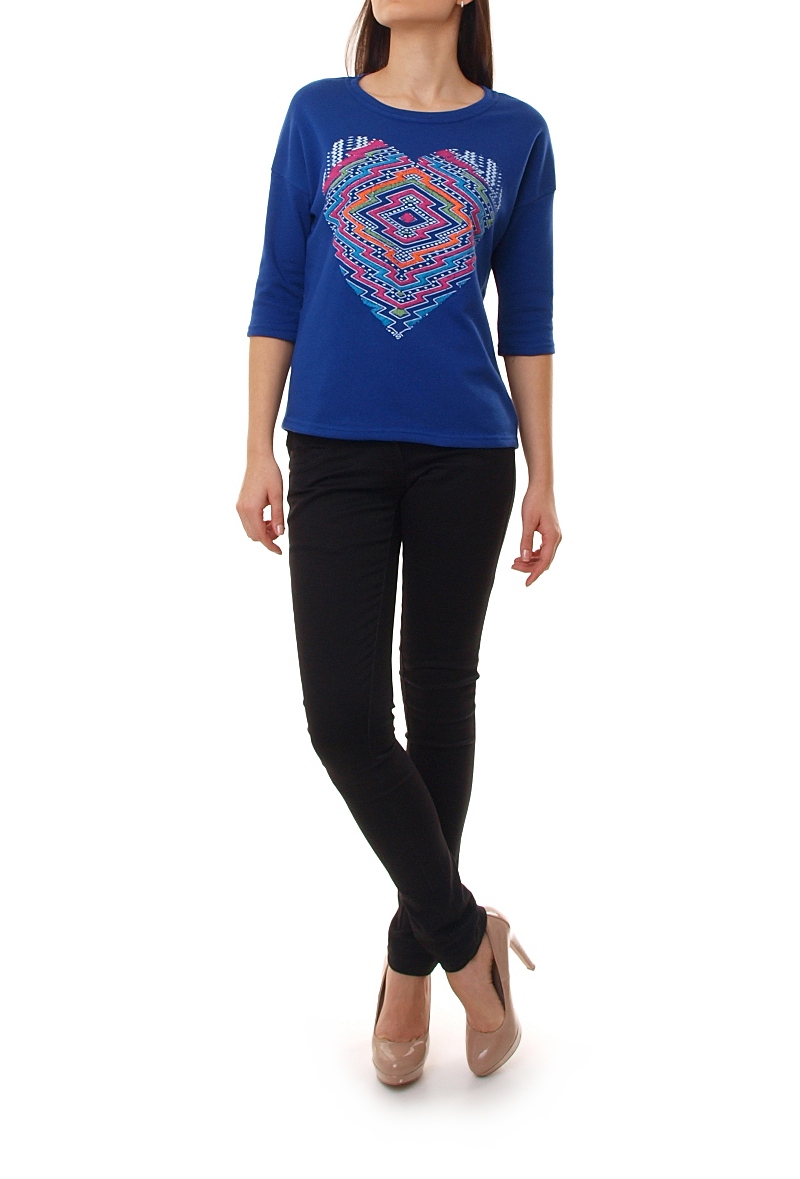 Modna, bawełniana bluza z ozdobną aplikacją w kształcie serca na przodzie. Bluzka dresowa z rękawkiem 3/4. Luźny krój. Wykonana z przyjemnego w dotyku materiału. Bluza z delikatnie dłuższym tyłem.Skład: 60% bawełna, 40% poliester