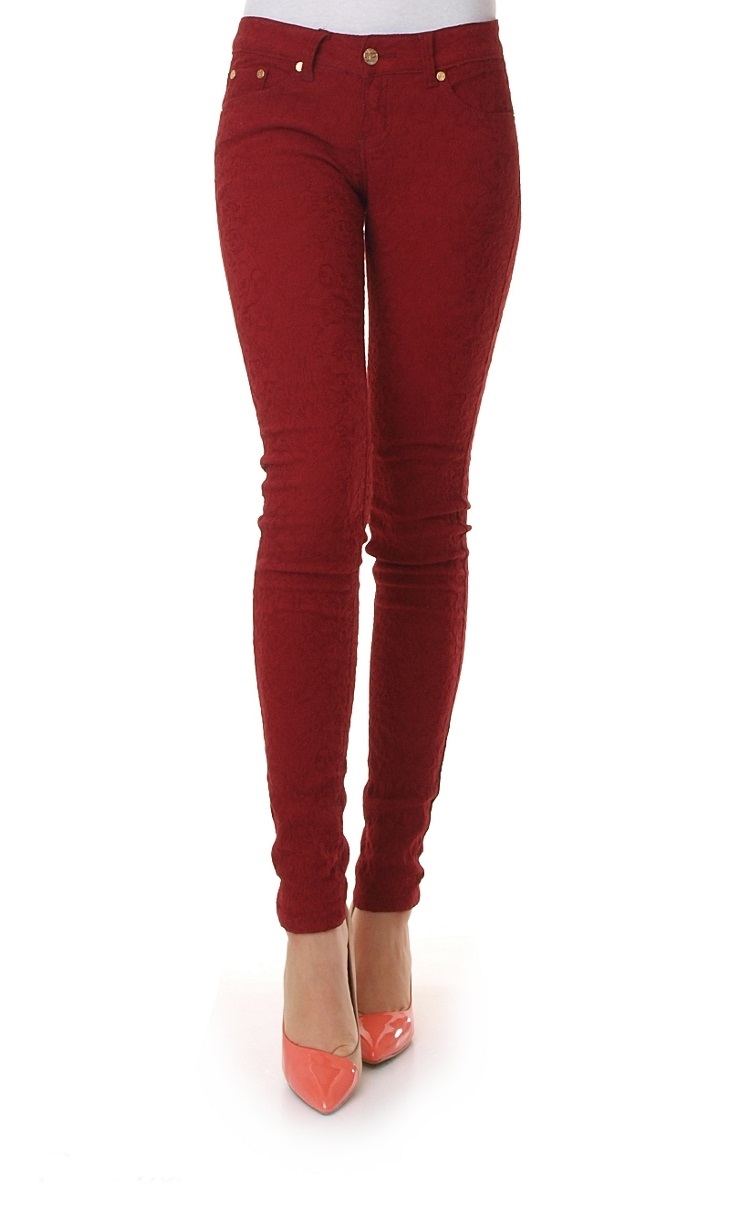 Modne koronkowe, ażurowe rurki. Dopasowane, wyszczuplające, bawełniane spodnie z kieszeniami z przodu i z tyłu zdobionymi złotymi nitami. Zapinane na guzik i zamek. Miękkie i przyjemne w dotyku bryczesy.Spodnie posiadają w pasie szlufki, dzięki czemu możliwa jest stylizacja z paskiem. Dzięki ciekawej fakturze spodnie prezentują się niezwykle seksownie.Skład: 70% bawełna, 27% poliester, 3% elastan