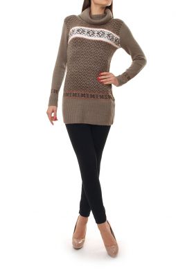 Bardzo ciepły i mięciutki golf. Wzorzysty długi sweter, który może służyć także jako tunika. Dół i rękawy zakończone elastycznym ściągaczem. Dzięki dodatkowi wełny idealnie sprawdzi się w zimne i mroźne dni. Bardzo wygodny i przyjemny w dotyku.Skład: 45% akryl, 25% wełna, 20% nylon, 10% elastan