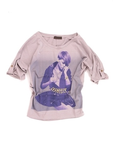 Super komfortowa bluzka bawełniana z nadrukiem / aplikacją Rihanny. Całość stylowo zdobiona złotymi ćwiekami. Krótkie rękawy (1/3 do 1/2 ręki) delikatnie podwijane i zapięte na guziki. Luźny styl kimona.Skład: bawełna/wiskoza elastan