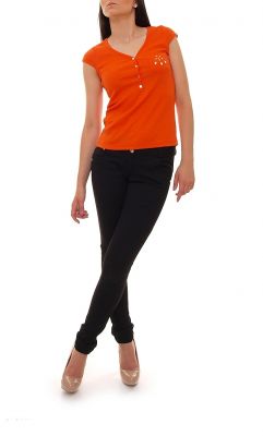 Super komfortowa bluzka. Top bardzo kobiecy, dopasowujący się do sylwetki. T-shirt ma na piersi kieszonkę ozdobioną delikatnymi dżetami.Skład: 100% wiskoza