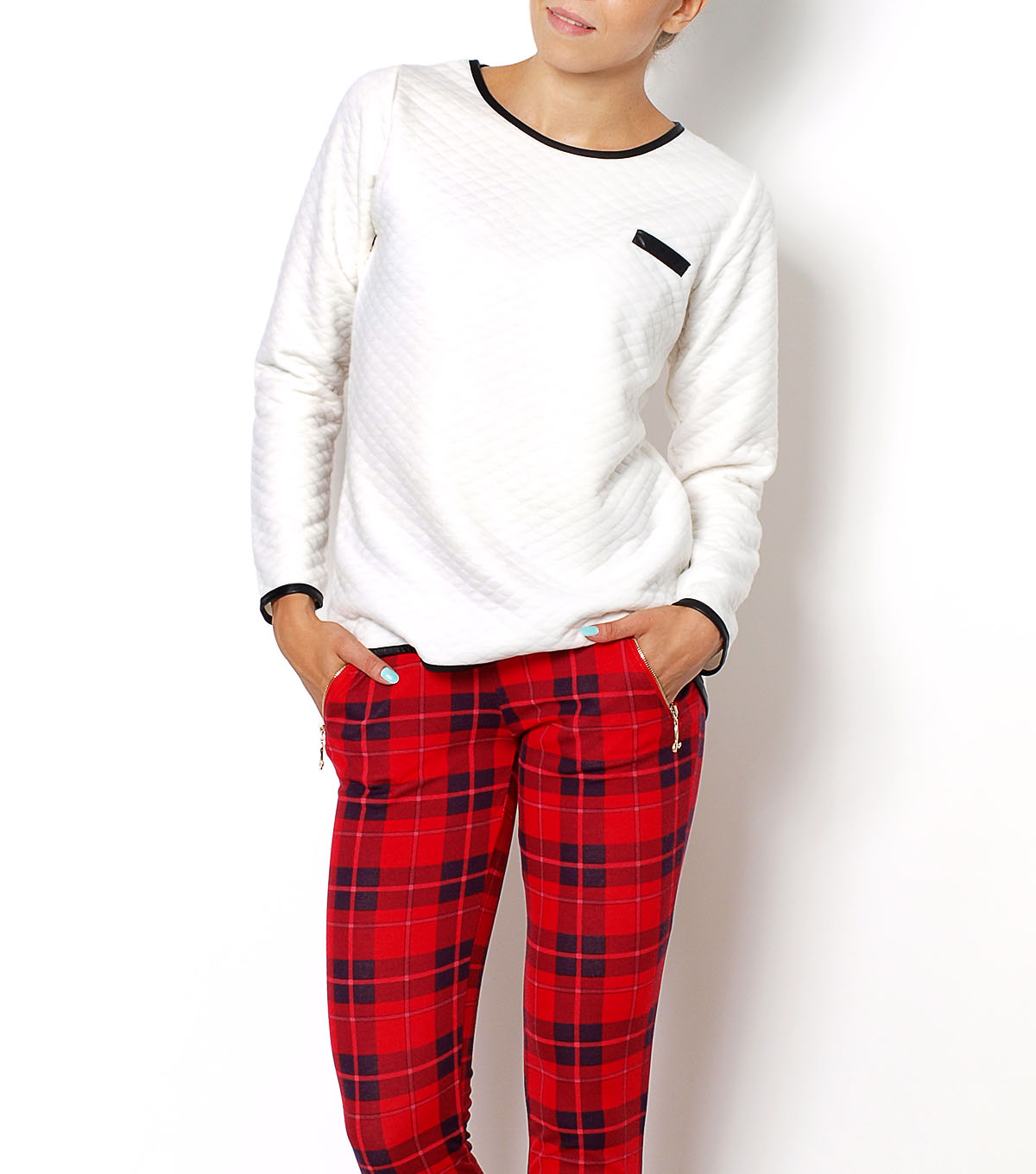 Asymetryczna pikowane bluzka z długim rękawem, dłuższy tył, dekolt okrągły, wykończenie lamówką w kontrastoym kolorze, z przodu imitacja kieszonki. Materiał 65% bawełna, 35% poliester.Modelka wzrost 172cm, na co dzień nosi S/M, rozmiar z prezentacji produktu