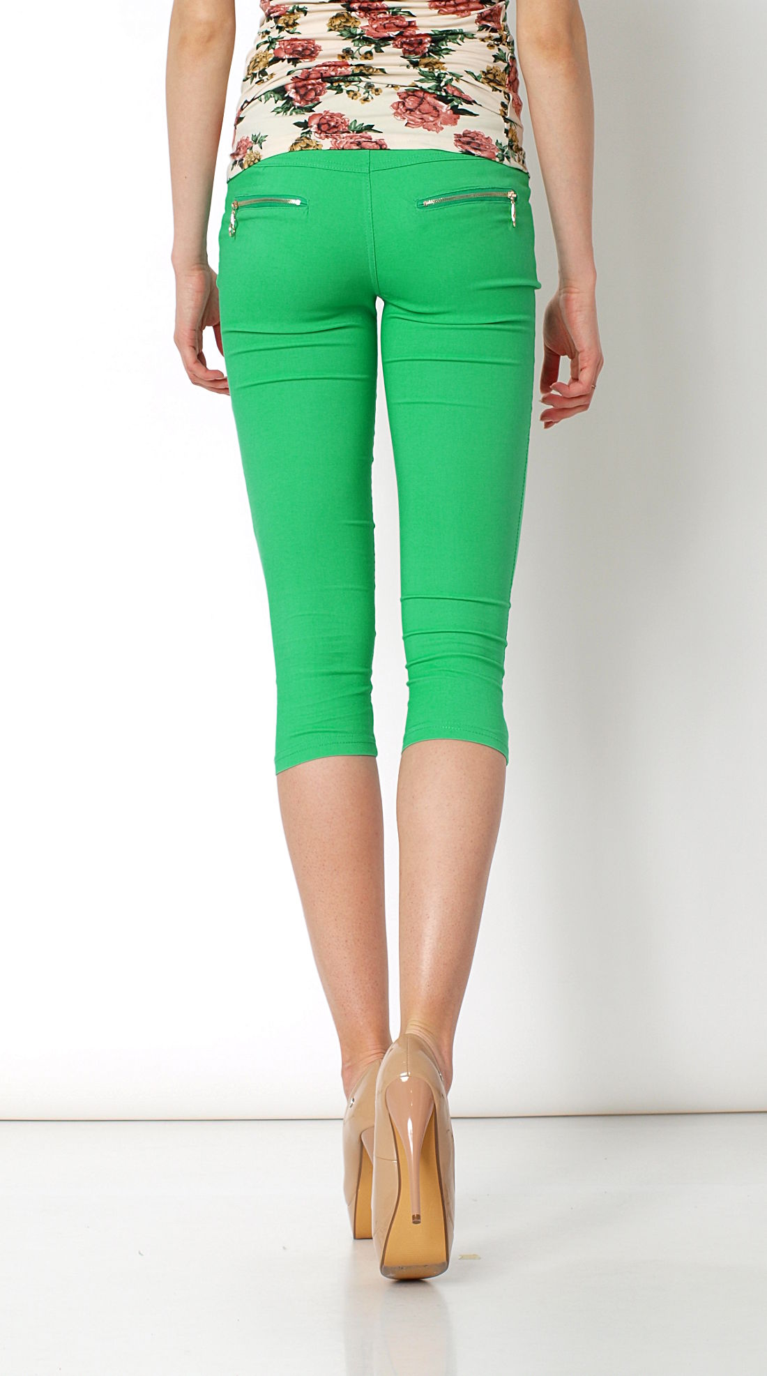 Bermudy w modnych, letnich kolorach. Elastyczne rybaczki, świetnie dopasowują się do figury. Ładnie wysmuklają nogi oraz podkreślają wszystkie atuty kobiecej figury. W pasie na gumce. Z przodu kieszenie. Z tylu ozdobne, złote zamki (imitacja kieszeni). Komfortowe rurki z nogawkami sięgającymi za kolano. Doskonale wyglądają w połączeniu z tunikami, asymetrycznymi bluzkami, czy letnimi topami.Skład: 65% bawełna,35% poliester.Wzrost modelki: 172cmModelka ma na sobie: rozmiar z metki LNa co dzień nosi rozmiar: S/M