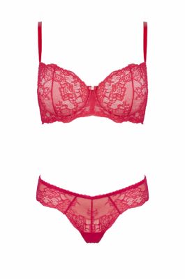 Zniewalająca, miękki soft zachwyca swoim seksownym i wyrafinowanym stylem. Miseczki na fiszbinie wykonane zostały z delikatnej czerwonej koronki z motywem kwiatowym. Pionowe cięcia na miseczkach doskonale zbierają oraz unoszą biust ku górze.Ramiączka regulowane, nieodpinane.