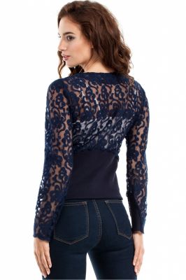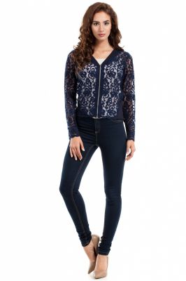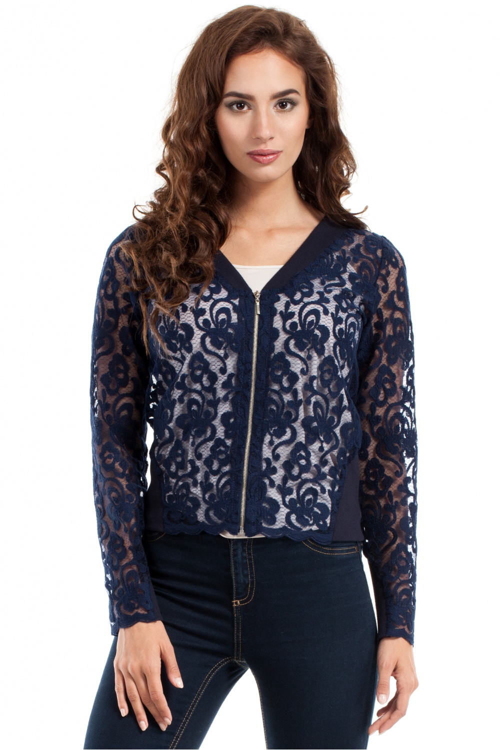 Modna zasuwana bomberka w wersji koronkowej z głębokim dekoltem i wysokim ściągaczem z tyłu podkreślającym talię jest ciekawym dodatkiem do codziennych stylizacji, ozdobi również Twoją wieczorową kreację.