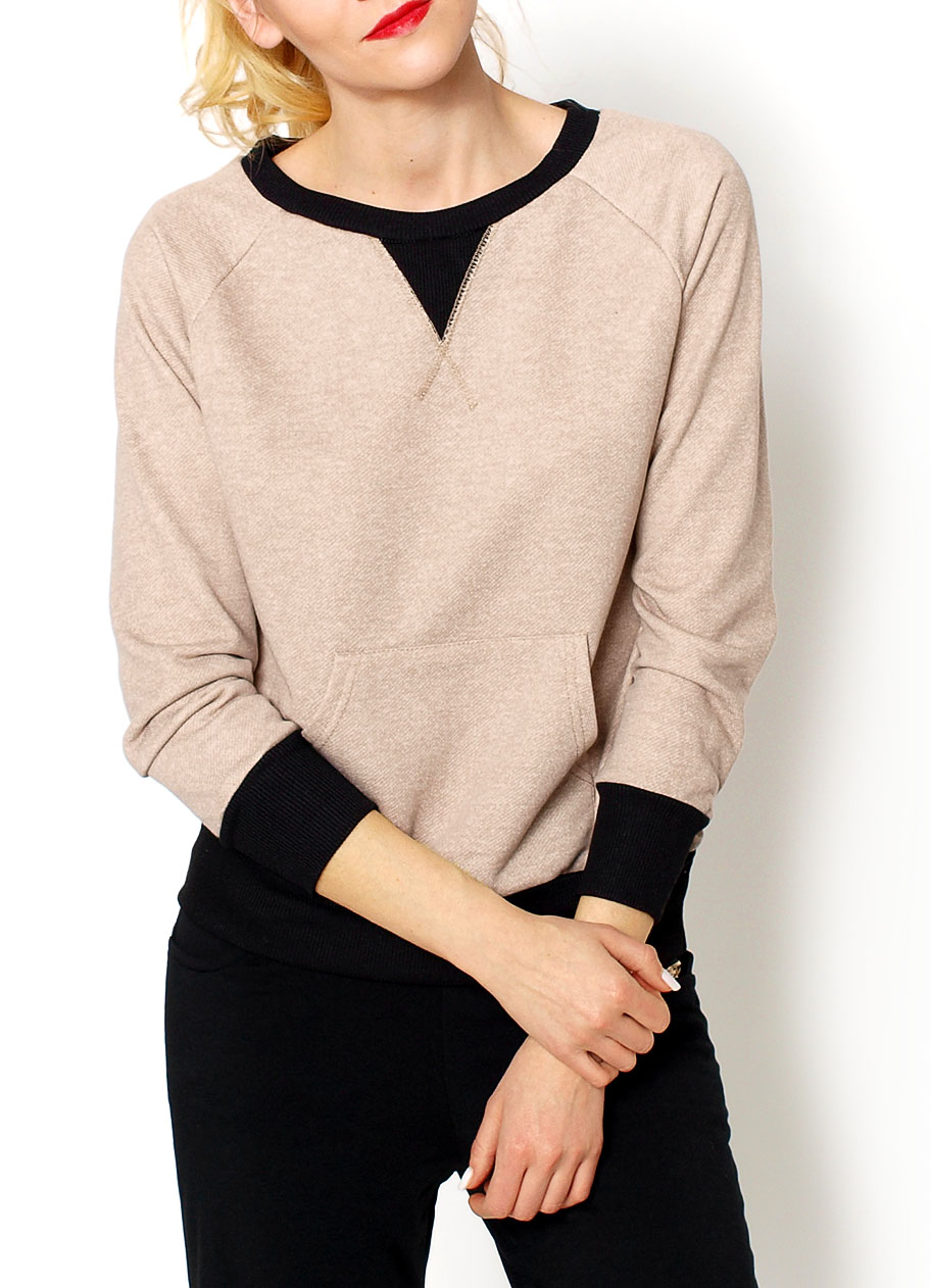 Bluza, klasyczny fason, kieszeń kangurek, dół i rękawy wykończone ściągaczami, dekolt, rękawy i dół w kontrastowych kolorach. Materiał 65% bawełna, 35% poliester.Modelka wzrost 175cm, na co dzień nosi S/M, rozmiar z prezentacji produktu M/XL