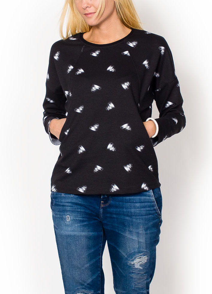 Modna oversizowa bluza w serduszka.Długie rękawy. Luźniejsza pod pachami. Dekolt okrągły.Z przodu wsuwane kieszenie.Wykonana z doskonałej jakości materiału. Bardzo przyjemna w użytkowaniu.Dzięki uniwersalnemu fasonowi, jest bardzo komfortowa, zapewnia swobodę i pasuje paniom o każdym typie sylwetki. Świetna na co dzień np. do jeansów. Produkt turecki świetnej jakości.Materiał 60% bawełna, 35% poliester, 5% elastanModelka wzrost 175cm, na co dzień nosi rozmiar S/M