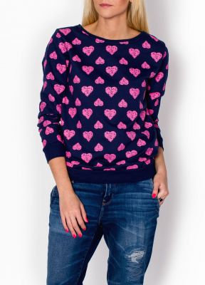Bluza z długim rękawem. Okrągły dekolt, rękawki i dół wykończone ściągaczem.Pasuje do każdego stylu. Prezentuje się świetnie w zestawieniu z jeansami, czy spódnicą, a nadruk typu fullprint w serduszka to najnowszy trend.Produkt turecki świetnej jakości.W zależności od noszonego rozmiaru bluzka będzie luźniejsza, bądź nieco bardziej dopasowana.Materiał 63% bawełna, 30% poliester, 7% lycraModelka wzrost 175cm, na co dzień nosi rozmiar S/M