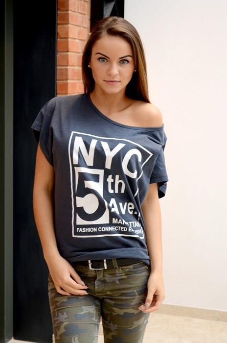 bluzka z krótkim rękawem posiadająca nadruk z przodubluzka posiada jednobarwny tył oraz ściągacze po bokachoryginalnie zapakowane z kompletem metekwykonane z najlepszych materiałówmodny design i niepowtarzalny wygląddoskonałe do licznych stylizacji na każdą okazję