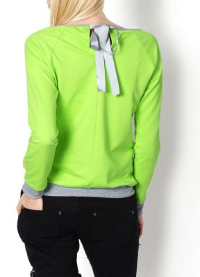Bluza dresowa / bluzka - rozcięcie na plecach i ozdobna tasiemka, wiązana w efektowną kokardę. Rękawy długie. Dekolt okrągły. Wszystko wykończone ściągaczem w kontrastowym kolorze.Kobiecy fason z kieszeniami. Wyjątkowa dresowa bluza z wiązaniem na plecach.Produkt turecki świetnej jakości. Materiał 90% bawełna, 5% elastanModelka wzrost 175cm, na co dzień nosi rozmiar S/M