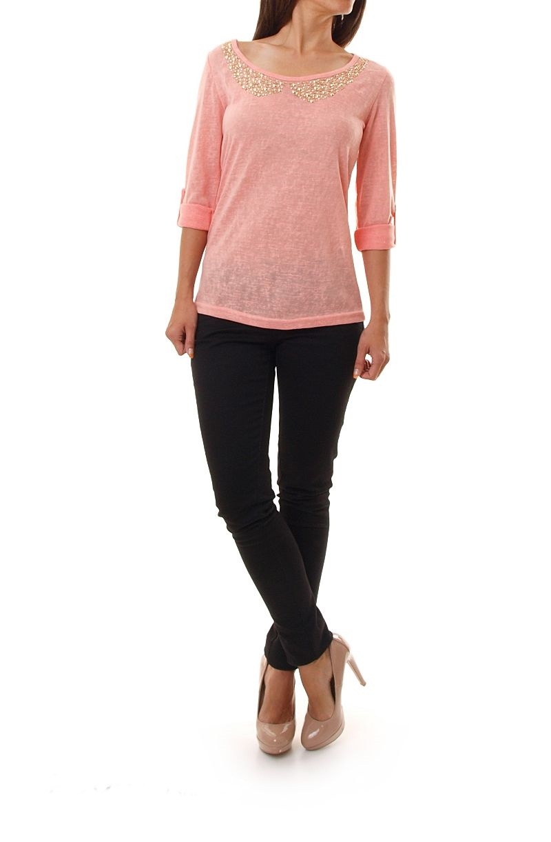 Bawełniana bluzeczka z seksownym wycięciem na plecach. Koszulka z dekoltem zdobionym dżetami. Bluzka z długim rękawem z możliwością podwinięcia do długości 3/4. Miękka i bardzo przyjemna.Skład: 80% bawełna, 20% poliester